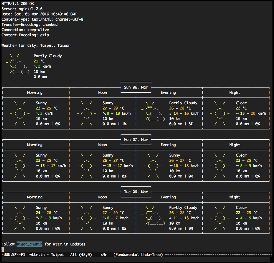 Emacs frontend for Igor Chubin's wttr.in weather service